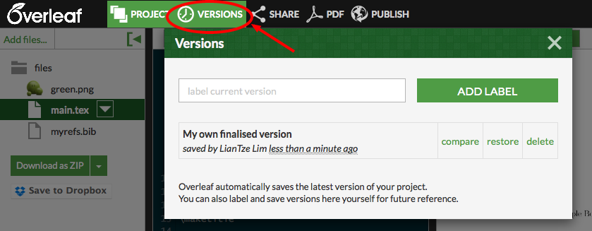Overleaf On Twitter Daniel Vaulot You Can Still Label The Versions Of Your Project Via The History Screen And Compare The Differences Between Those Versions Which Is How The Compare Versions Functionality Worked
